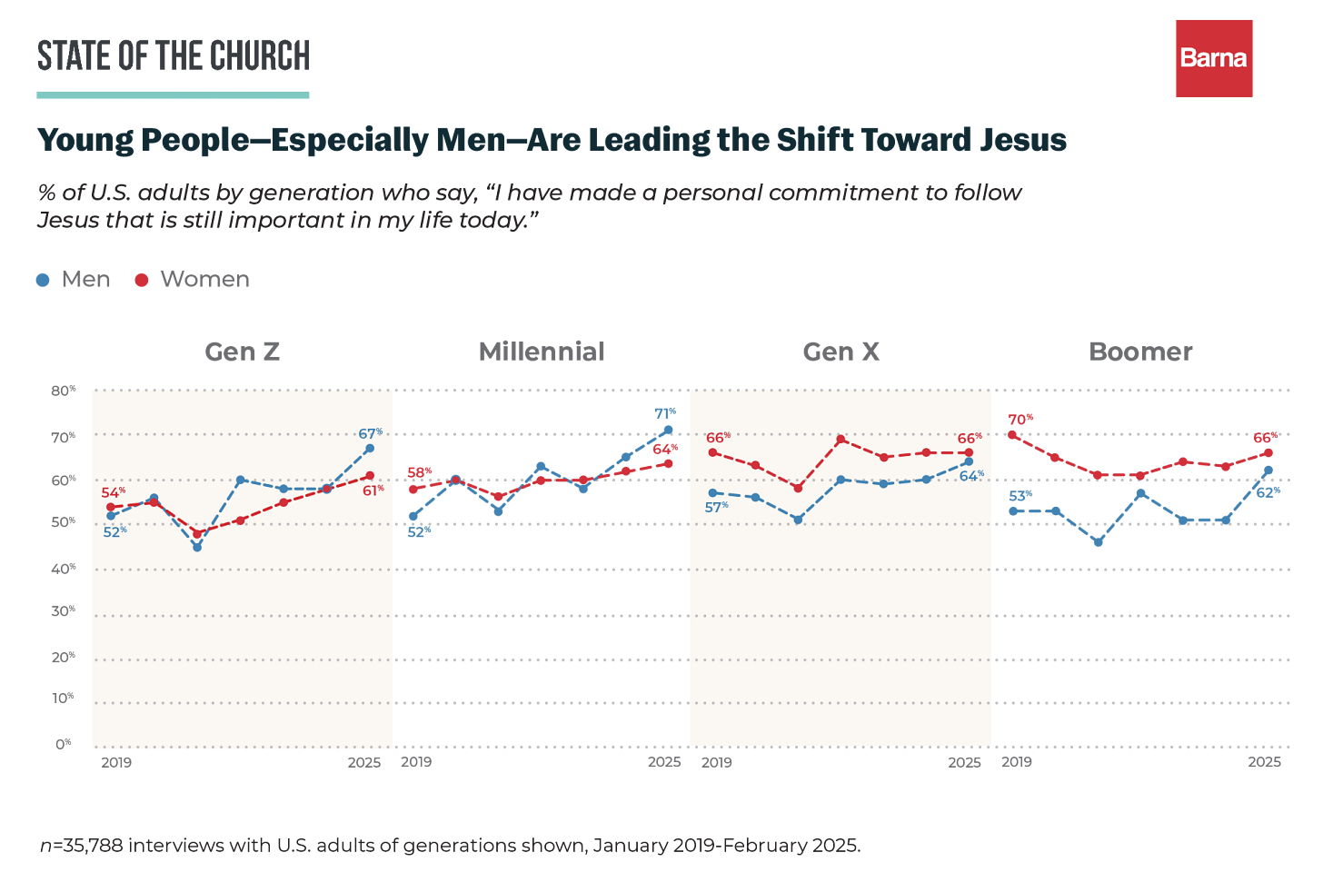 Back in April, Barna Group released a study revealing some telling data concerning younger people and the Church. The research found that Gen Z and Millennials are experiencing surges in statements of personal commitment to Jesus; not something superficial or nominal, but foundational and concrete.